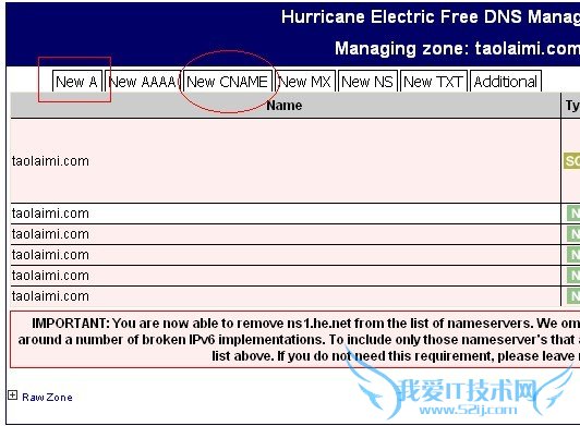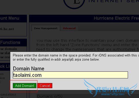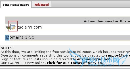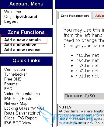 然后如图点击add a new domain添加域名,he.net一个账户最多添加50个域名。