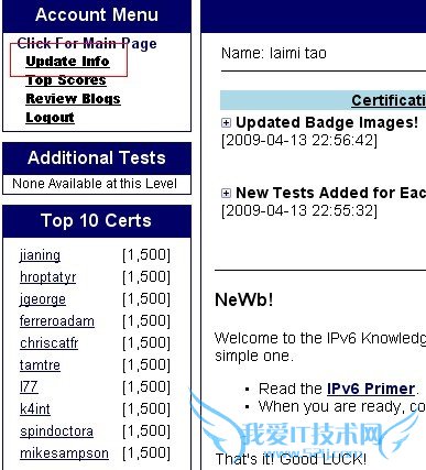 2:如图依次点击certification、updata info,可以修改密码和个人资料。