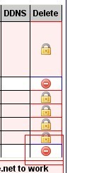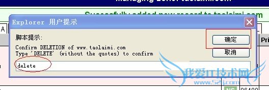 5:如果要删除解析记录,或者删除域名等,如图点击最右边的红色符号,再输入delete,点击确定,就删除了。