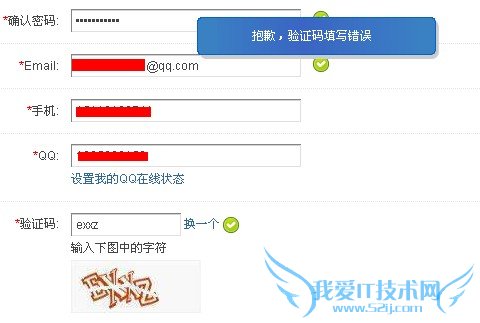 有些网站的提示信息也需要注意随时更新,比如这个站,各个文本框内都填写正确了,已经有对号显示了,但提示信息却还是显示验证码错误,会给用户造成很大的误解。
