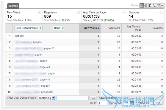 注意:这时候如果你是第一次设置,是不会有数据的,过滤器从设置开始才会生效。所以最好等几天,或者在网站统计刚加上的时候就设置完毕。