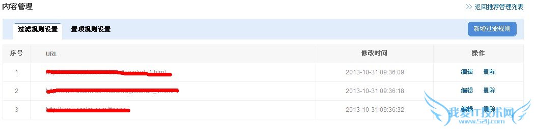 5、开启百度推荐。点击“开启”按钮,这样百度推荐的功能就打开了,根据百度推荐的官方说法,文字内容需要1天的时间,而图片则需要2天的时间。这里你点击内容管理还可以新增过滤规则和置顶规则,将不想展现出来的来源页过滤,置顶重点产品。