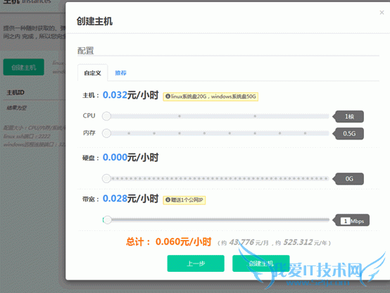因为只是试试,也不用数据盘,因为是linux系统,1核512M 差不多了,一个月43元,比较便宜