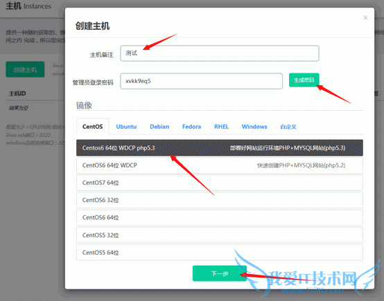 先取一个名字,然后生成登陆密码,这里模板比较全,各种linux版本加起来大约有20多个。