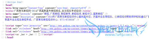 看了上面的几个优化要点,大家肯定还有疑问。所以,我接下来给大家看看我自己做的现成的案例,大家可以直接看我优化的广西育龙单招网,网址是 http://www.gxdzxx.com,通过源代码大家不难发现,我的源代码已经做到最精简的程度了,没有table嵌套,header没有多余的内容,js和css只有必要的才添加。
