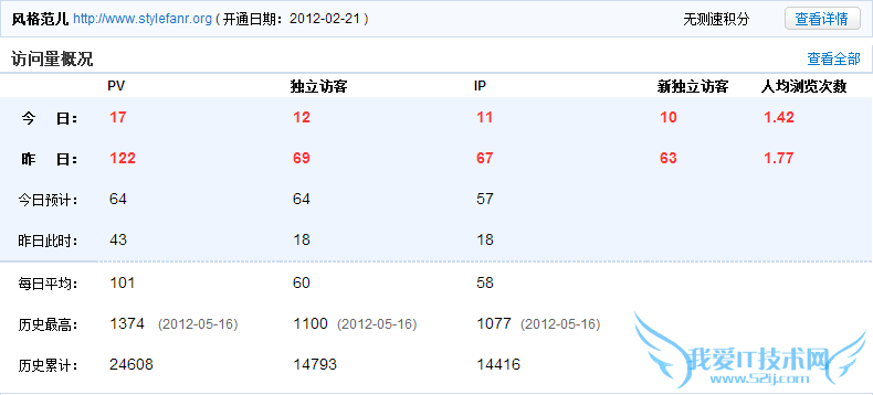 时间过得真快,一转眼,我的独立博客『风格范儿』已经运行了一年多了。当初搭建这个博客的时候(2012.2.20)只是为了寻找一个没有敏感词屏蔽的空间表达自己的想法,分享自己那些没有人愿意搭理的多余想法。没什么针对性地写了一年,内容有些杂乱包括生活、随笔还有软硬件的测评以及科技产品的评论。内容不精,所以流量不多。