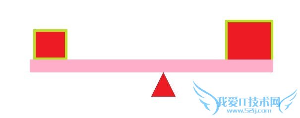 那么再看下图。还是一根杠杆,但是这时候把两端放的物品变一下。看的出来,如果两者密度相同,距离支点的距离也一样,那么两者还有可能达到平衡状态嘛?显而易见的,答案是否定的。杠杆必定会往左偏,因为左边的重量明显重于右边。此时就失去了平衡。