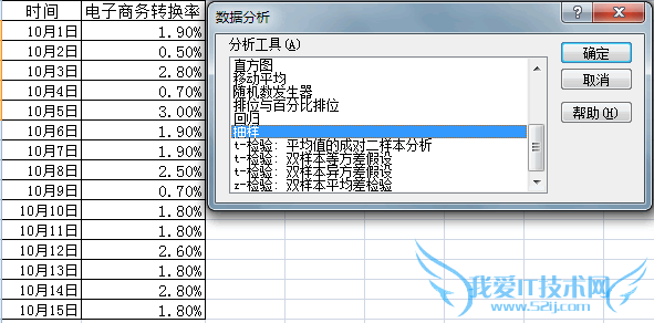 抽样分析工具以数据源区域为总体,从而为数据源创建一个样本。当总体太大而不能进行处理或绘制时,可以选用具有代表性的样本。