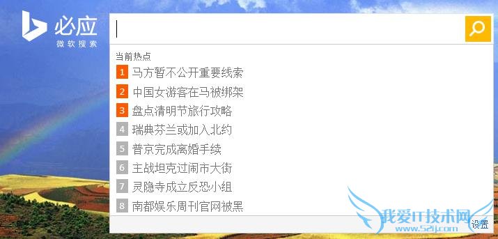 不同于百度以及谷歌的搜索框提示。即时没有在必应和360的搜索框中键入任何关键词,搜索框也会自动呈现目前的主要搜索热点新闻。必应下拉菜单中是8条热点新闻,360是10条。搜狗应有的同样是这一方式。