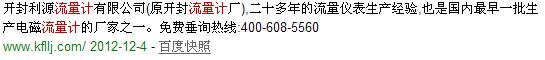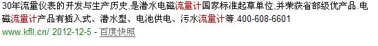 描述信息的状况会好很多,至少还有写的不错的。第一名的写得就太差了,就是关键词堆积,毫无特色。写得比较好的是第三个和最后一个。不仅表明拥有悠久的历史(20年、30年),也写明了企业的地位(国家标准起草单位、最早生产厂家之一),并且说明了自己的主要产品(电磁流量计),最后给出了免费咨询电话方便用户联系。这样的描述是可以促使用户点击的,因为这些信息增加了网站的信任度。