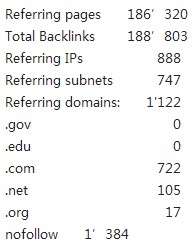 淘鞋网的外链很不错,以com居多,其他类型域名也有不少,在反链中有1384个nofollow不传递权重