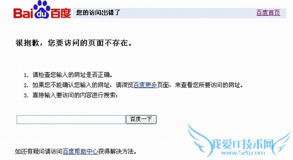 百度404页面设置很简单,没有网页跳转,提供让用户自己选择是否点击“百度更多”(打开后是百度系列产品的导航页面)或者一个搜索框百度一下。