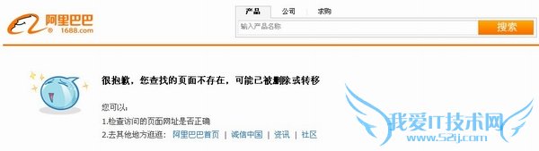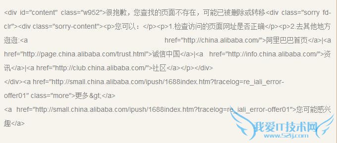 一个404页面内容,上部是b2b产品搜索框。下部是一些产品展示。比其上面几个站而言复杂了一些,404页面醒目性较小一些。但也体现出电商独有的产品展示的一面。