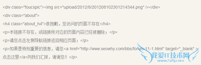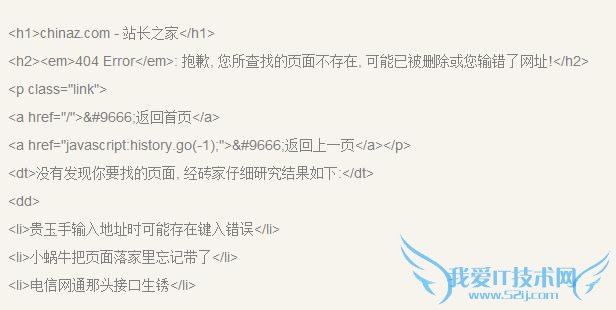 3)、404指向一个动态页面,比如error.asp,如果不在页面里面进行设置,仅仅是返回提示的HTML 代码,将导致页面返回200 状态码,这是不正确的,我们可以在显示完提示内容后,增加语句: Response.Status=“404 Not Found” ,这样就保证页面返回404状态码。