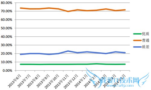 2、从近一年的评估数据中我们发现,优质网页的绝对数量非常少,且几乎没有增长;普通网页的占比在下降,相应的,质差网页的比例却有明显上涨。