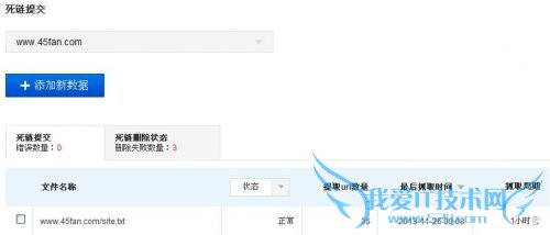3、同上一样在百度站长工具里面将这些非法网页提交死链接,最好在网站根目录创建txt文档,然后将非法网页网页链接复制到txt文档中,通过“死链提交”-“提交数据”来提示。如下图所示: