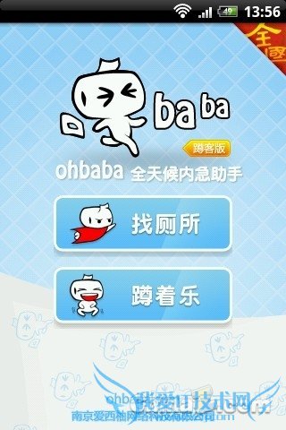 噢粑粑(http://www.ohbaba.com/)是一款能够通过GPS定位你附近有哪些免费的厕所,快速帮助内急人群找到附近洗手间的手机应用。除了找洗手间这个核心功能,还提供厕所评论互动,微博求厕纸以及打发蹲坑时间的蹲着乐阅读功能。