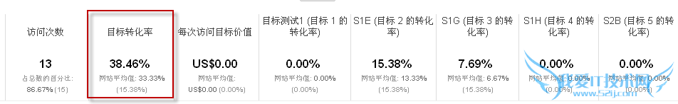 这个转化率表示当前查看的流量渠道在网站所有目标的转化情况,他也可以依据我们查看报告的不同,细分为不同流量来源渠道的转化情况。另外当我们在网站中设置了超过一个以上的目标时,就会出现访问者在一次访问中完成多次转化的情况,因此总目标转化率有可能大于100%。