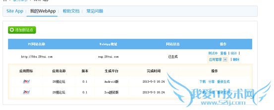 才开始用的时候,我以为就是给网站增加一个wap版本,没想到还提供了安卓和IOS的移动应用客户端。支持用户下载安装到手机里,从而可以抢占用户的手机桌面。因为给网站开发一个可安装的APP应用程序,找专业的公司一般要几万的开发费用。没想到用百度的服务,直接就生成出来一个,这让我比较意外。当然百度这个也目前功能也比较简单,和专业的有差距。但胜在免费方便,希望以后能持续改进,现在还只是0.1版本,等到10.0版本的时候可能就很强大了。