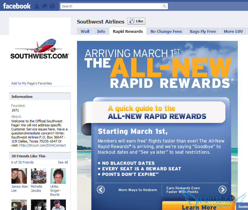 如果列出一整张最佳营销活动的单子,但是不提到任何使用了Facebook最流行的应用‘地点’的公司,似乎有点说不过去。西南航空公司与许愿 基金会就利用这个功能合作了一个绝佳的慈善项目。每当粉丝使用‘地点’应用分享一个他们所在的地理位置,航空公司就会给基金会捐赠一美元。这次以慈善为中 心的推广项目因为取得了巨大的成功。超过100万的用户在这次活动中成了西南航空公司的粉丝。记得在下次飞行中加入这个绝佳的营销活动,分享你的地理位置 吧!