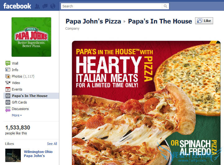 我们的年终列表上第一个来自于比萨产业的Facebook营销活动来自于Papa Johns.他们利用Facebook这个平台宣传了他们的‘Papa 特色比萨’竞赛。这个竞赛在吸引了大量目光的同时也给Papa Johns带来了很多粉丝。这个竞赛让粉丝们充分利用了他们的味蕾和创意给公司发明新口味的比萨。获胜者还可以因此获得一部分的利润。所以,这个竞赛活动 让公司Facebook主页上的人数大量增加也不足为奇了。