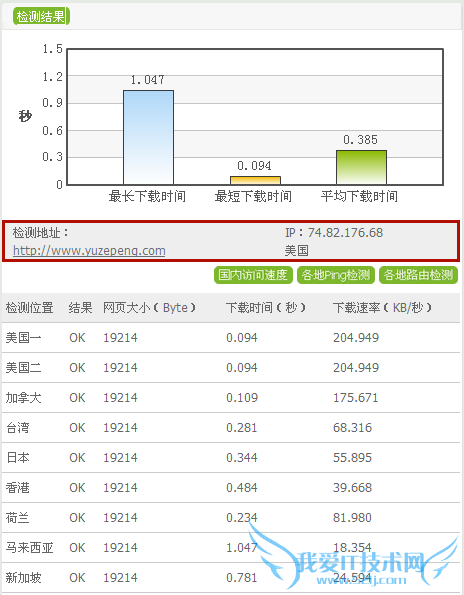 国内访问速度测试是主要的,因为我们中文字大多面向的是汉语华人,看以上数据,我作为一个网友的角度来看这个博客的话,如果是我非常感兴趣的文章我最大的等待时间估计在10秒内,如果10秒内没有打开,我也许就去搜索引擎搜索同样标题的文章了。