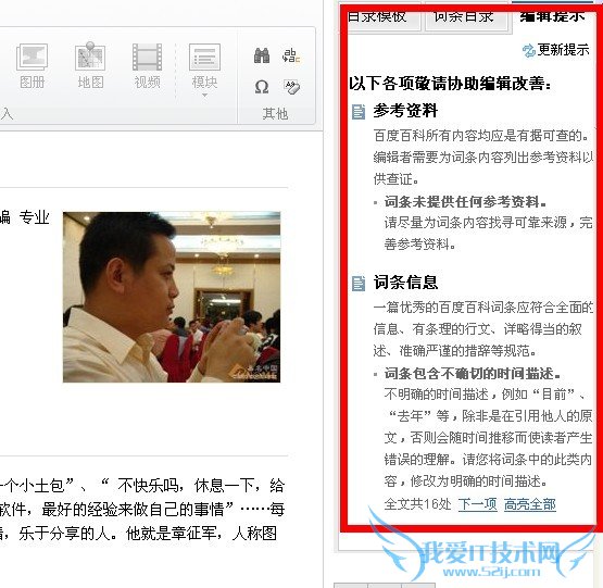 第四步,如果有编辑提示的话,我们按照编辑提示来进行修改词条方可。