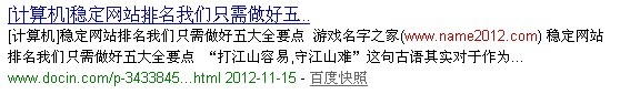 其实做百度文库外链就是这么的简单哦,赶快尝试去做一下吧。不过在小编做www.name2012.com这个站的时候发百度文库外链的时候发现做百度文库需要我们注意的就是一定不要发布一些有版权问题的内容,这些文章一般都是不给通过的,即便是通过也很快会被删除,甚至追究法律责任。