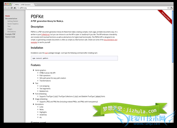 PDFKit 是一个使用 CoffeeScript 编写,用于 Node.js 平台的 PDF 文档生成工具,为那些已经使用服务器端 JavaScript 来创建自己的应用程序的开发者提供了非常酷的 API。