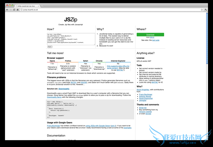 如今,JavaScript 能够产生大量的数据,为您的用户提供多个文件的最简单的方式是放在一个 ZIP 文件中,JSZip 能够帮助你创建压缩文件。看看下面的示例代码:
