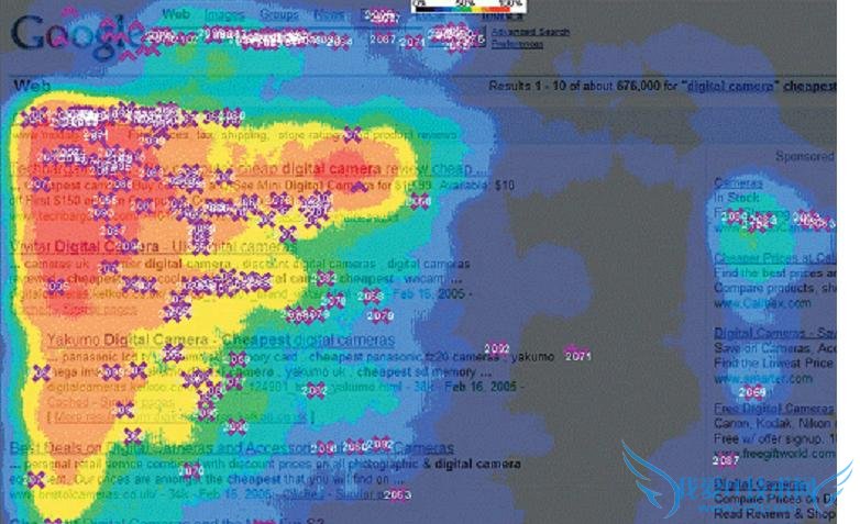 国外曾经有一份关于搜索者对于搜索结果页面的点击热度调查,调查的结果如下图所示。