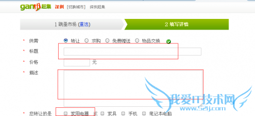 出现了上图之后就可以根据所标注有红点的位置将信息填写完整后即可发布。