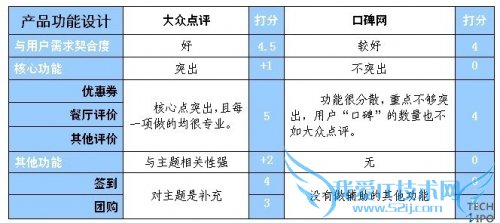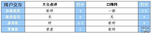 如前文功能框图所示,大众点评功能较多,但逻辑清晰,每一条线索之间干扰较少;口碑网功能很多,但是逻辑不够清晰,无法让用户容易的形成对其整个功能的理解。