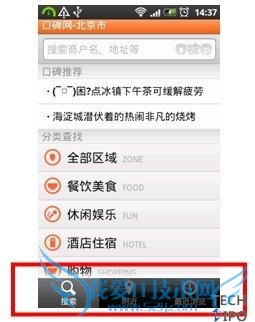 大众点评按键位置符合使用逻辑,较为合理;口碑网存在硬伤,如首页下方“搜索”bar条位置不符合用户阅读习惯。两相比较,大众点评更好,如下图: