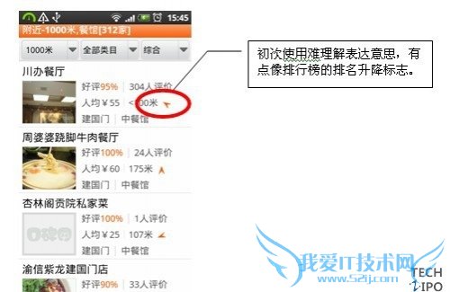 本版本中两者均为使用指导。大众点评各项功能交易掌握,口碑网整体也易掌握,但存在一些细节需要解释,如餐厅指向等,如下图: