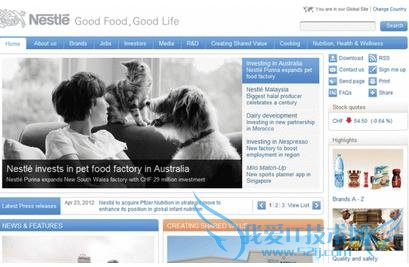 让我们来看一个雀巢公司的网站,如图是美国版本。