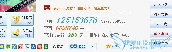 仔细看了这两个小说网站的首页设计,其实区别不大,个人以为小说类网站的用户体验设计主要体验在书名页面和文章页面,这两个页面应该是用户停留时间最长的。因为读者要写评论、要阅读文章,对于SEO优化来说,这两类页面也是最重要的,因为长尾词都布局在这两类页面。如图三、图四所示,17K小说网的书名页面设计的功能有:加入书架、进入书签、txt下载、放入桌面,还添加了页面分享的功能。石头也看了起点中文网的页面,功能设计基本类似,不过多了如图四的功能,方便了不同类型的手机阅读用户,因此可以说在手机用户方面起点比17K做的更细致。