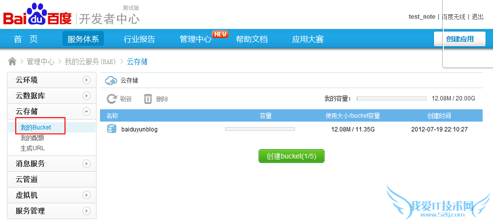 第七步:在云存储中创建bucket,用于存储wordpress上传的资源。
