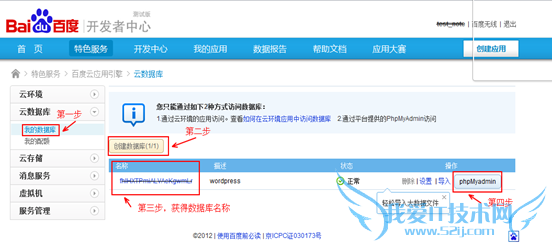 点击“云数据库”,再点击创建数据库,完成数据库的配置,并得到数据库的名称。