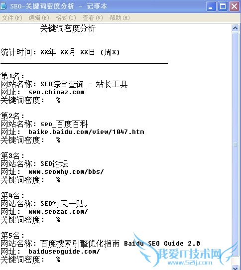 我们把百度首页中的自然排名前五名,用记事本复制,简单格式如下: