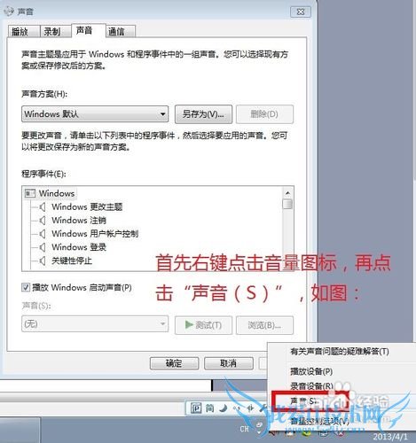 style="margin: 0cm 0cm 0pt;" >第一步:首先右键点击音量图标,再点击“声音(S)”,如图: