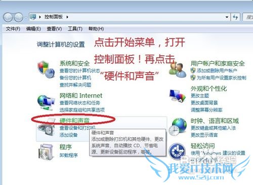 style="margin: 0cm 0cm 0pt;" >第四步:点击开始菜单,打开控制面板!再点击“硬件和声音”