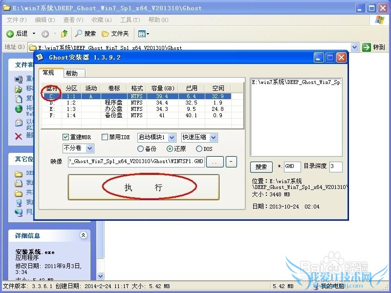3、运行“安装系统”就会出现下面的界面,选择盘符C盘,一般就是默认就可以了,然后点“执行”
