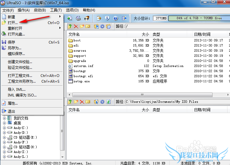 安装准备:windows7镜像文件,UltraISO软件,容量大于或等于的4GU盘