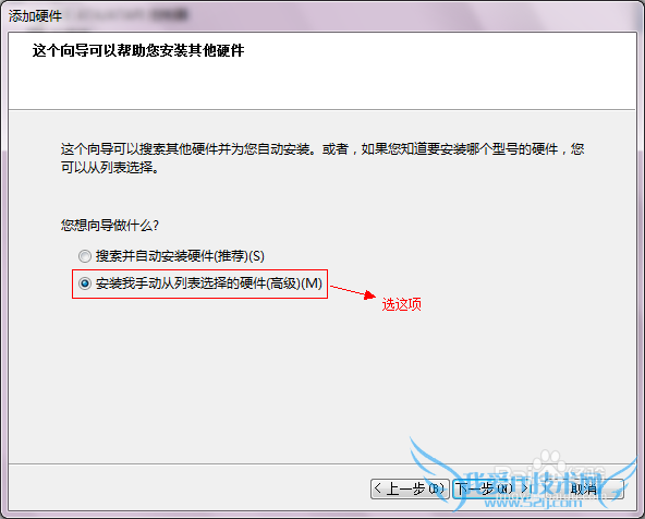 这里一定要选择下面一项“手动从列表选择”,再继续单击下一步。