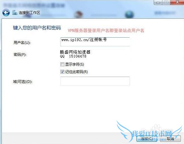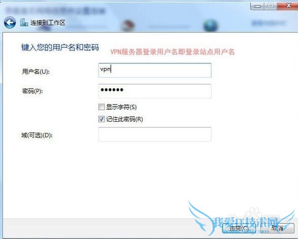 第七步:填写你在VPN服务器上注册的用户名和VPN登录密码,点击“连接”