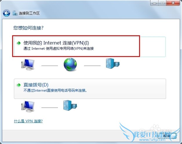 第五步:选择“使用我的Internet连接(VPN)”,点击“下一步”