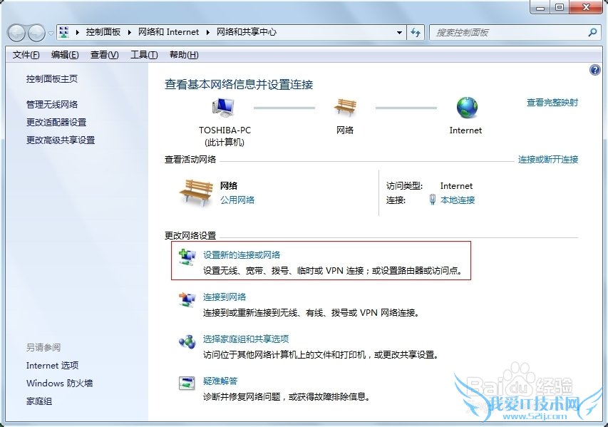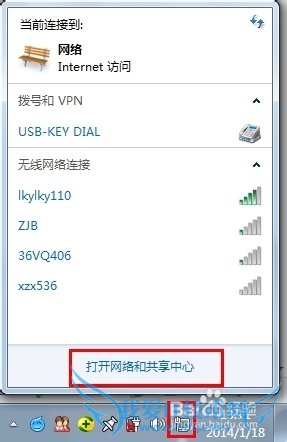 第一步:打开控制面板的“查看网络连接任务”或者直接点击右下角小电脑图标,打开网络共享中心,方法不是一种,找到一种适合自己的即可