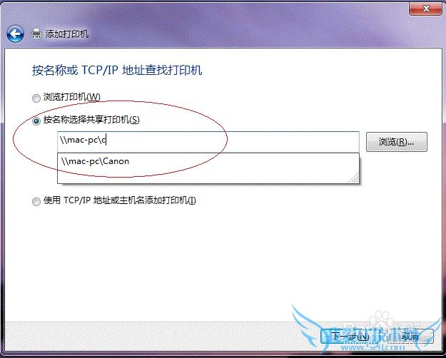 接下来的操作比较简单,系统会自动找到并把该打印机的驱动安装好。至此,打印机已成功添加。 第二种连接局域网打印机方法 1、在【添加打印机】窗口选择【按名称选择共享打印机】,并且输入“\\计算机名\打印机名”(计算机名和打印机在上文中均有提及,不清楚的朋友可分别查看第二步和第四步设置)。如果前面的设置正确的话,当还输入完系统就会给出提示(如下图)。接着点击【下一步】。