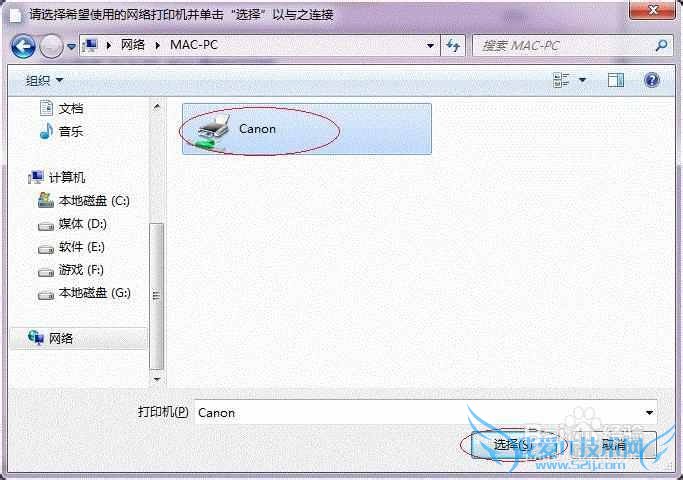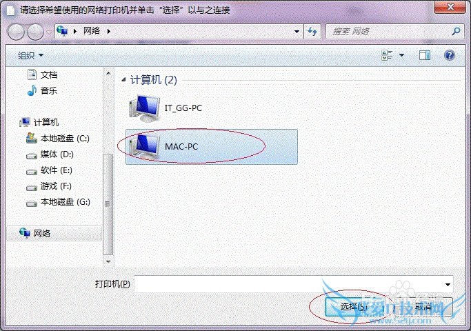 3.、选择目标打印机(打印机名就是在第二步中设置的名称),点击【选择】。